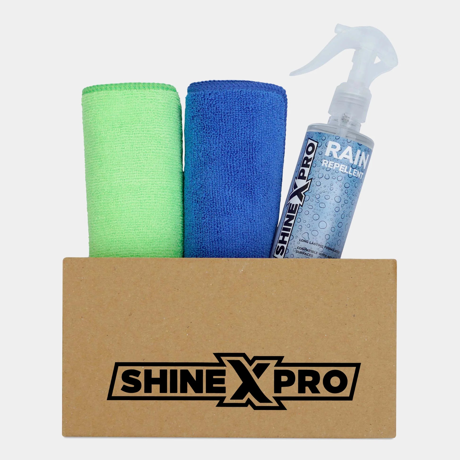 - Before applying ShineXPro Rain Repellent, make sure to clean the windshield and other glass surfaces thoroughly with ShineXPro Automotive Glass Cleaner and a microfiber towel. Allow the surface to dry. This will ensure that the solution bonds properly and provides maximum effectiveness.